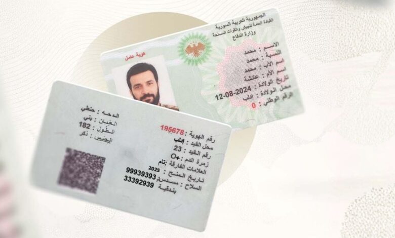 وفي حزيران الماضي، كشف المسؤول في المكتب الإعلامي لوزارة الدفاع السورية، أن الوزارة ستصدر بطاقات تعريف عسكرية جديدة متطورة، تتضمن بيانات شخصية ورقمية مشفرة، ضمن مواصفات تقنية تُسهم في تعزيز الموثوقية والهوية المؤسسية للعناصر العسكرية.